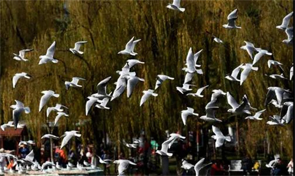 隨著公園西區長聯文化大道上銀杏漸黃,臨水區域就會飛來了首批安家的紅嘴鷗。