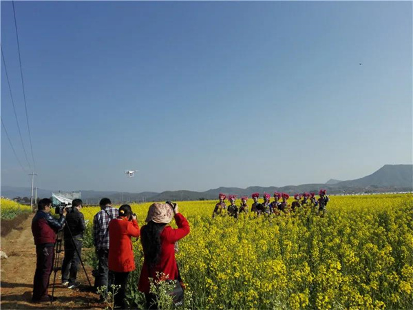 楚雄子午鎮的油菜花,已于近日盛開,花田里蝶飛蜂鳴,花田旁農人忙碌,白墻黛瓦掩映花間,形成一幅鄉村水墨山水畫卷。你可以去尋春色了,去感受“兒童急走追黃蝶,飛入菜花無處尋”的意境。