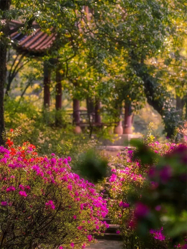 明植物園化身為杜鵑花的海洋。漫步于園內(nèi),每一步都踏著芬芳,每一眼都是驚艷。