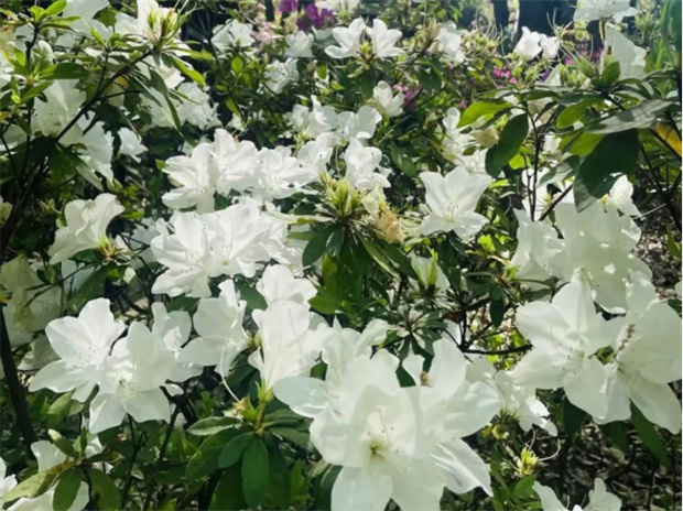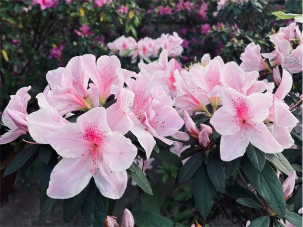 公園內(nèi)的杜鵑花顏色豐富多樣,有熱烈奔放的紅色,如火焰般燃燒;有嬌嫩柔美的粉色,似少女般羞澀;有純潔無瑕的