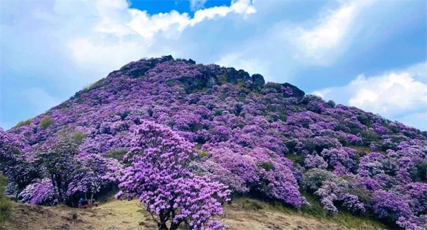 白色,如雪花般晶瑩;還有神秘高貴的紫色,散發(fā)著獨特魅力……色彩斑斕的杜鵑花相互交織,形成一幅幅美麗畫卷,