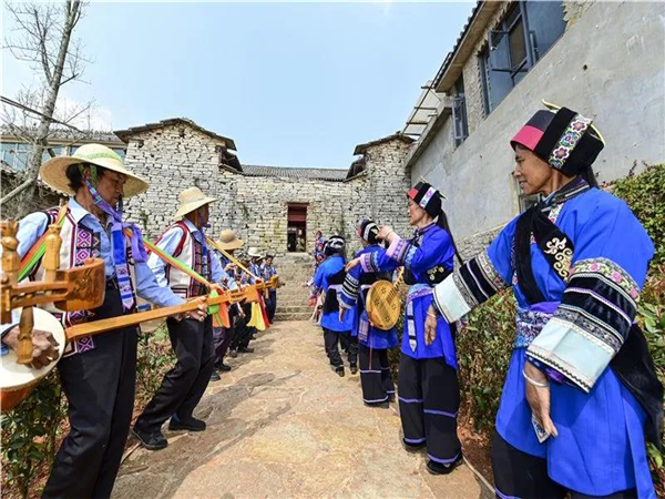 彝族是一個好玩、愛美的民族。村口有一塊空地,村民在空地中間用石頭壘高出一個圓形的舞臺,節假日當地人在這載歌載舞。閑時,彝族婦女會三五成群地坐在一起刺繡。你可以在當地村民的指導下參與彝族  ,感受原始紡織的文化,學習彝族包頭習俗,了解撒尼阿詩瑪包頭的文化精髓。