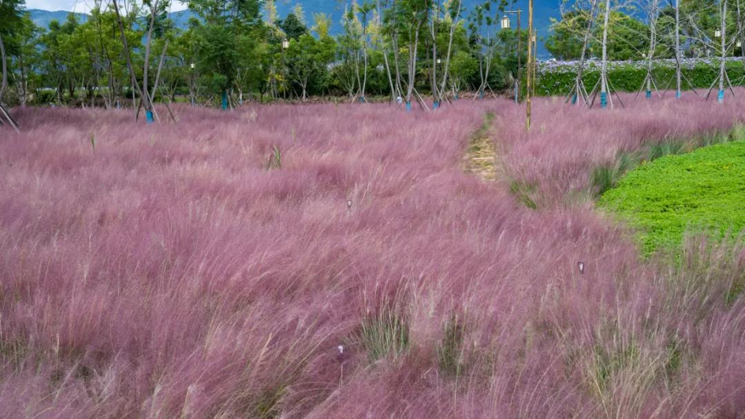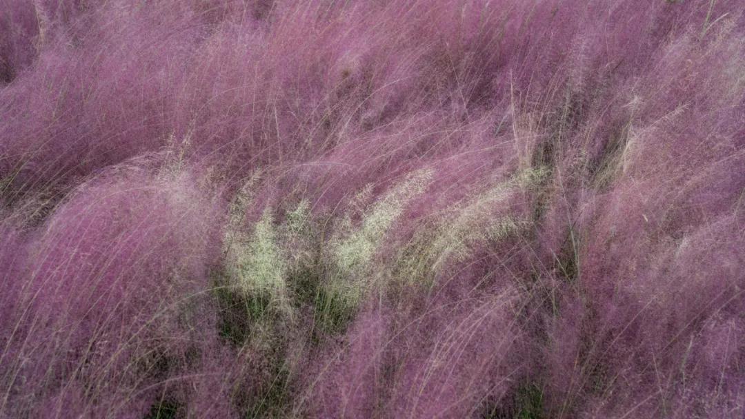 半身高的粉黛亂子草縈繞身側