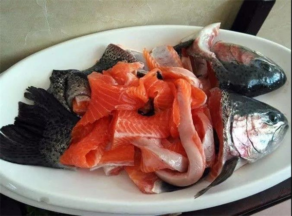 天然淡水湖里的美味虹鱒魚
