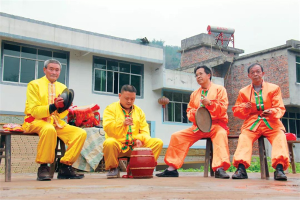 “江南牡丹樹樹紅,天下豪杰訪英雄,訪到好匠有好匠,訪到賓朋有賓朋。”大伙準備妥當后,潘師傅揚起聲調開始“團場子”,他提起馬鑼繞場邊走邊敲,敲一下說幾句,聲如洪鐘。